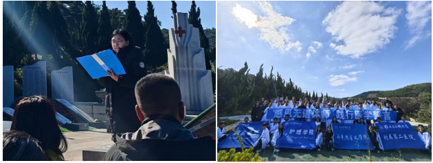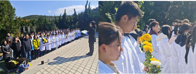 为了激发医学生的责任感和使命感,培养医学人文精神,10月18日上午,大连医科大学马克思主义学院联合附属二院、麻醉学系、护理学院组织部分师生前往大黑石将军山遗体捐献者公墓开展感恩“无语体师”集体悼念活动。此次活动是思想道德与法治课实践教学的精品项目之一。马克思主义学院领导班子、部分思政课教师、护理学院辅导员、硕士研究生、2025级附属二院临床医学专业、麻醉学专业及护理专业共80余名师生参与此次活动。活动还特别邀请了我校遗体捐献者家属徐女士,和医学生们共上了一场特别的“思政课”。