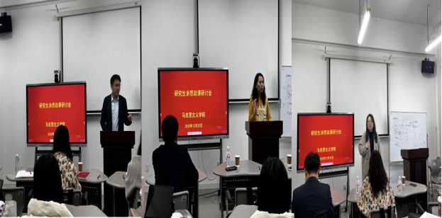 12 月 25 日,马克思主义学院2025级研究生在习近平新时代中国特色社会主义思想专题研究的实践教学环节,开展了 “研究生讲思政课” 主题展示活动。学院研究生围绕理论学习心得依次汇报,李妩祎、李斌、许传洲三位老师全程点评并作总结指导。